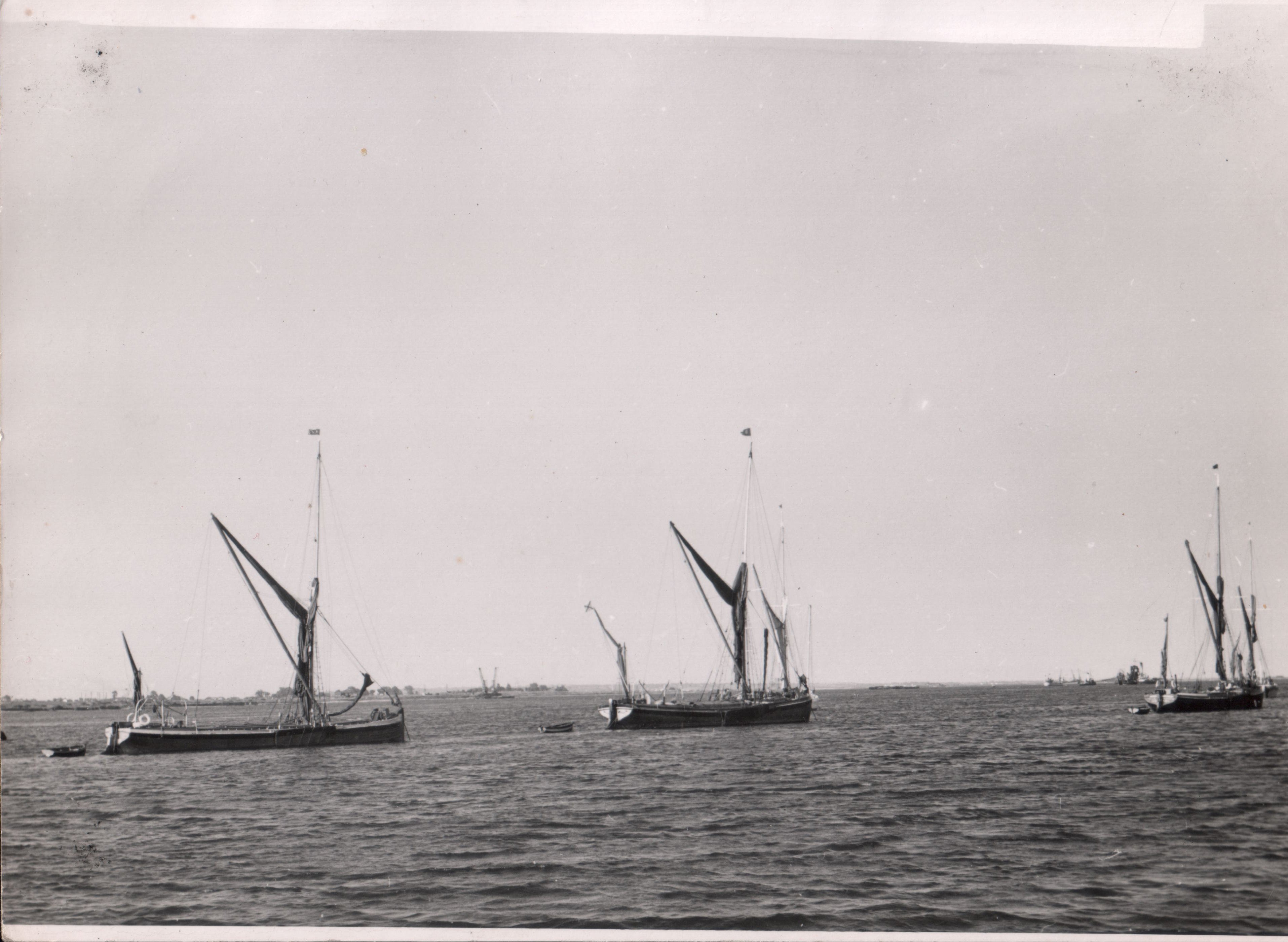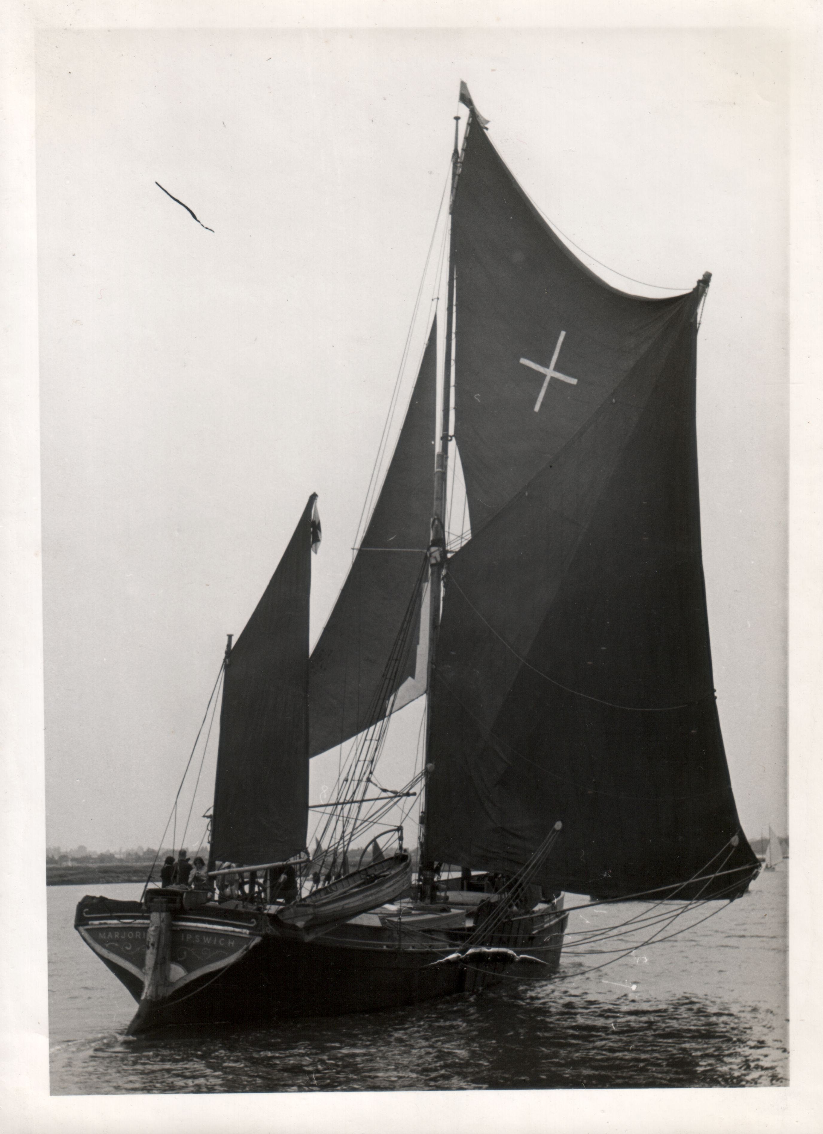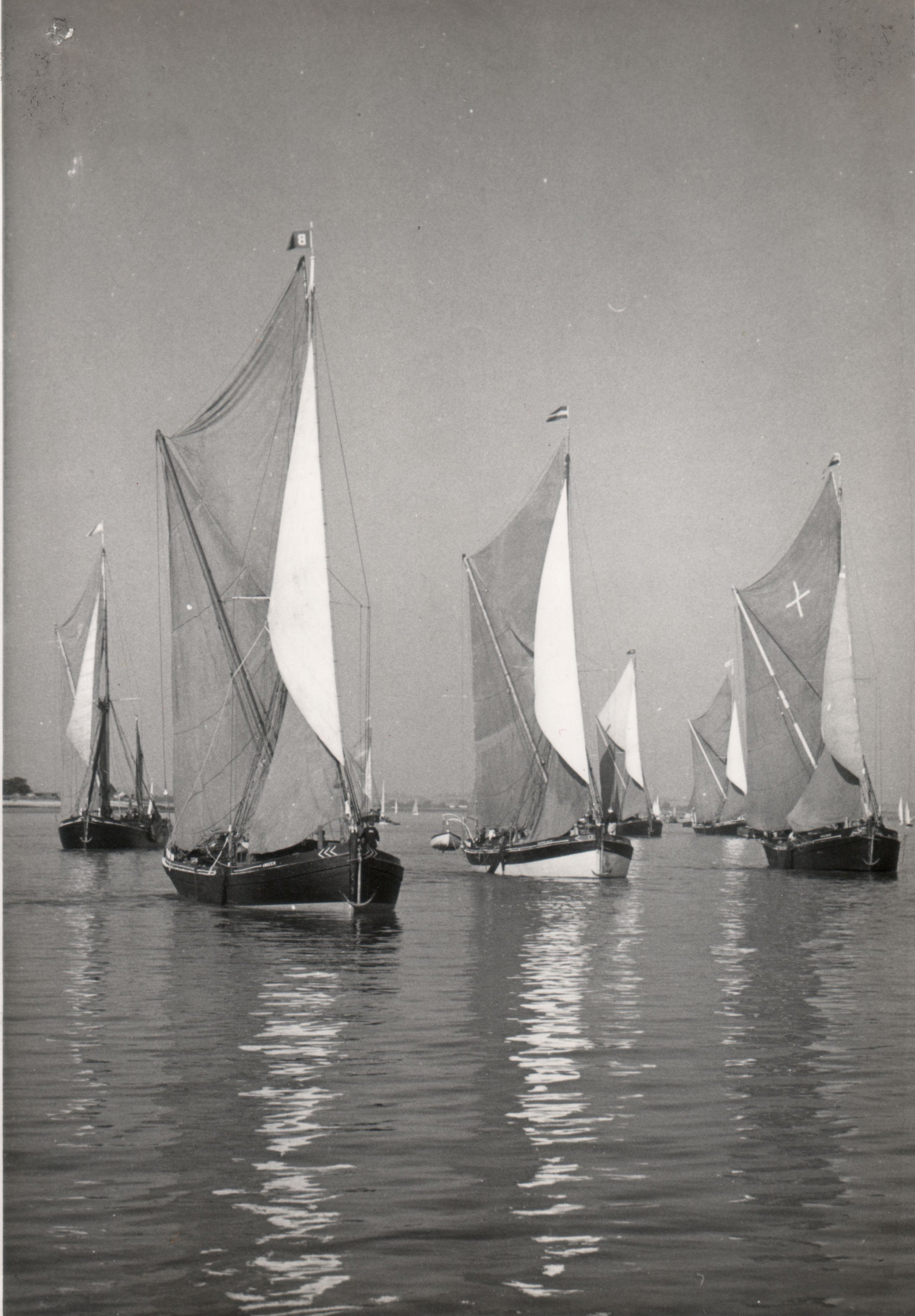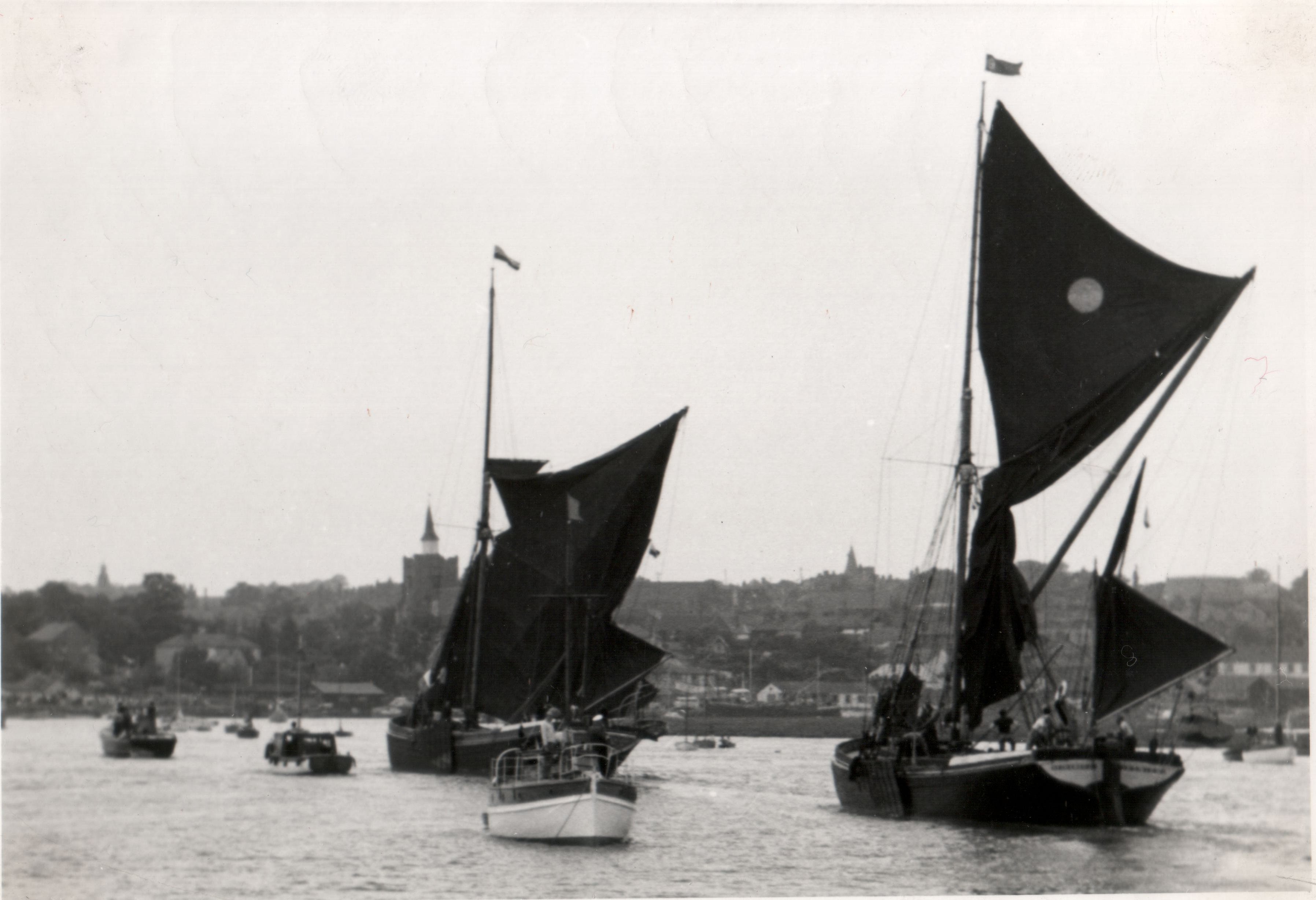 End of the race. SB Marjorie (L) and SB Spinaway C, Blackwater barge match, 1962
