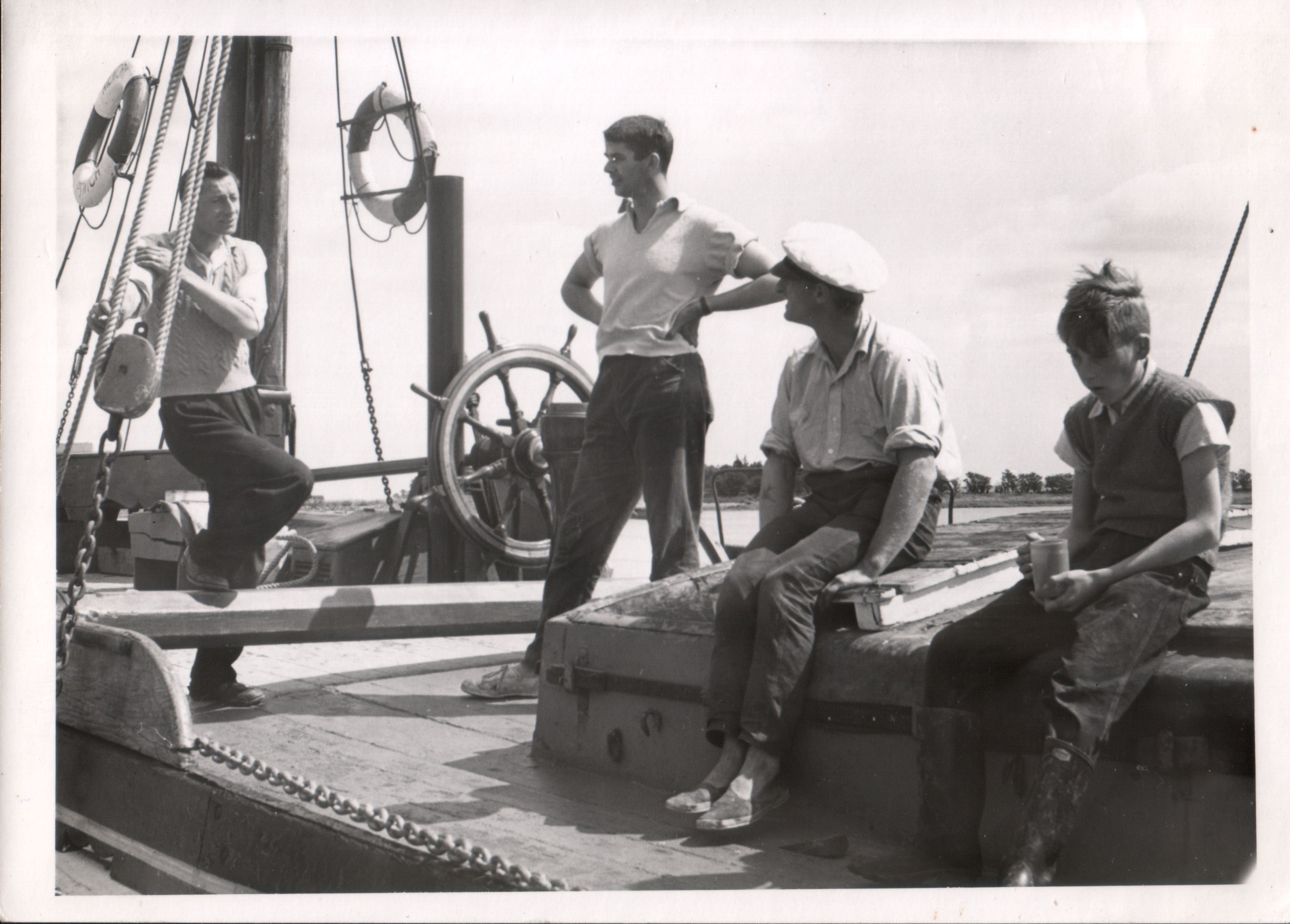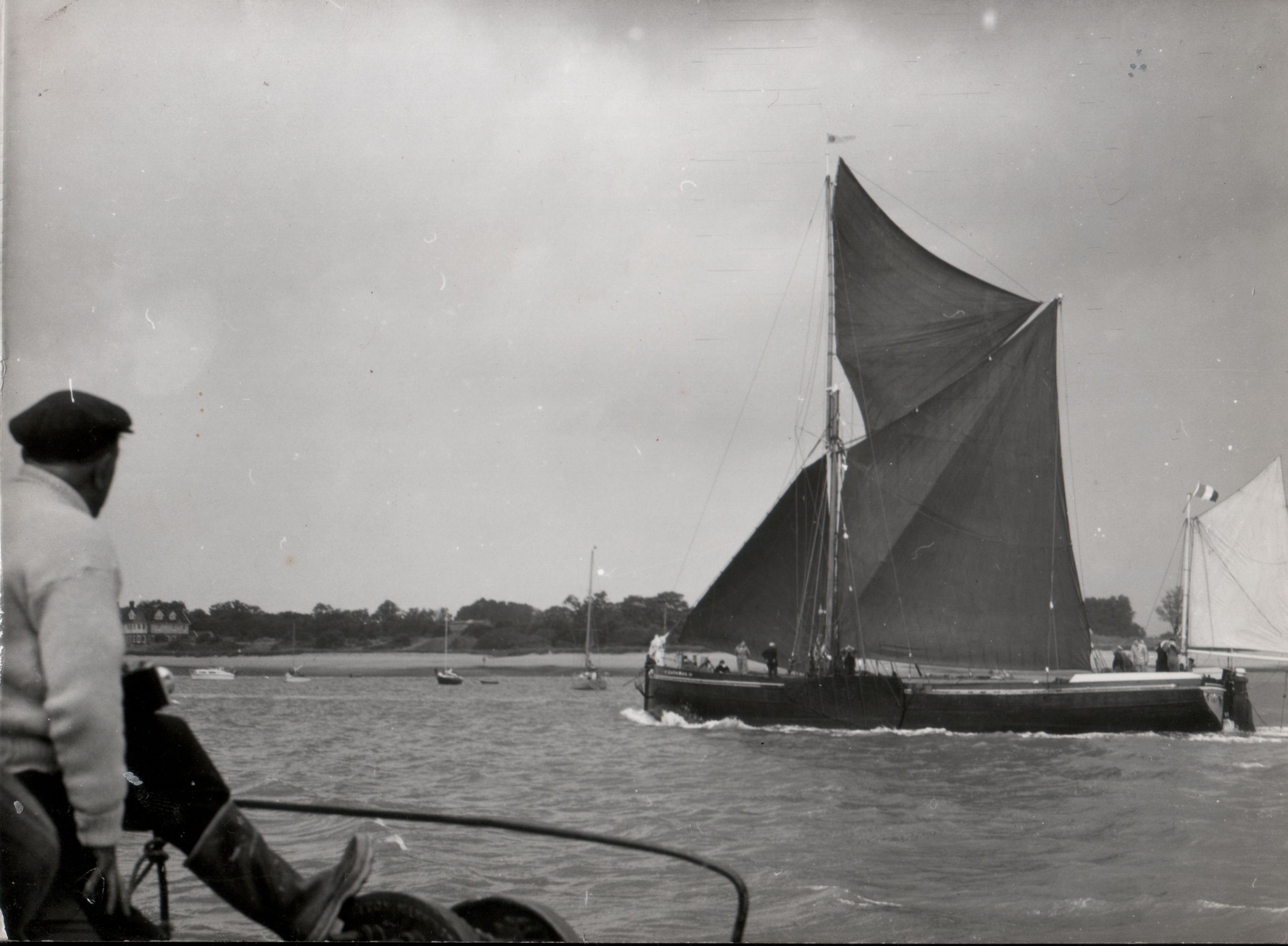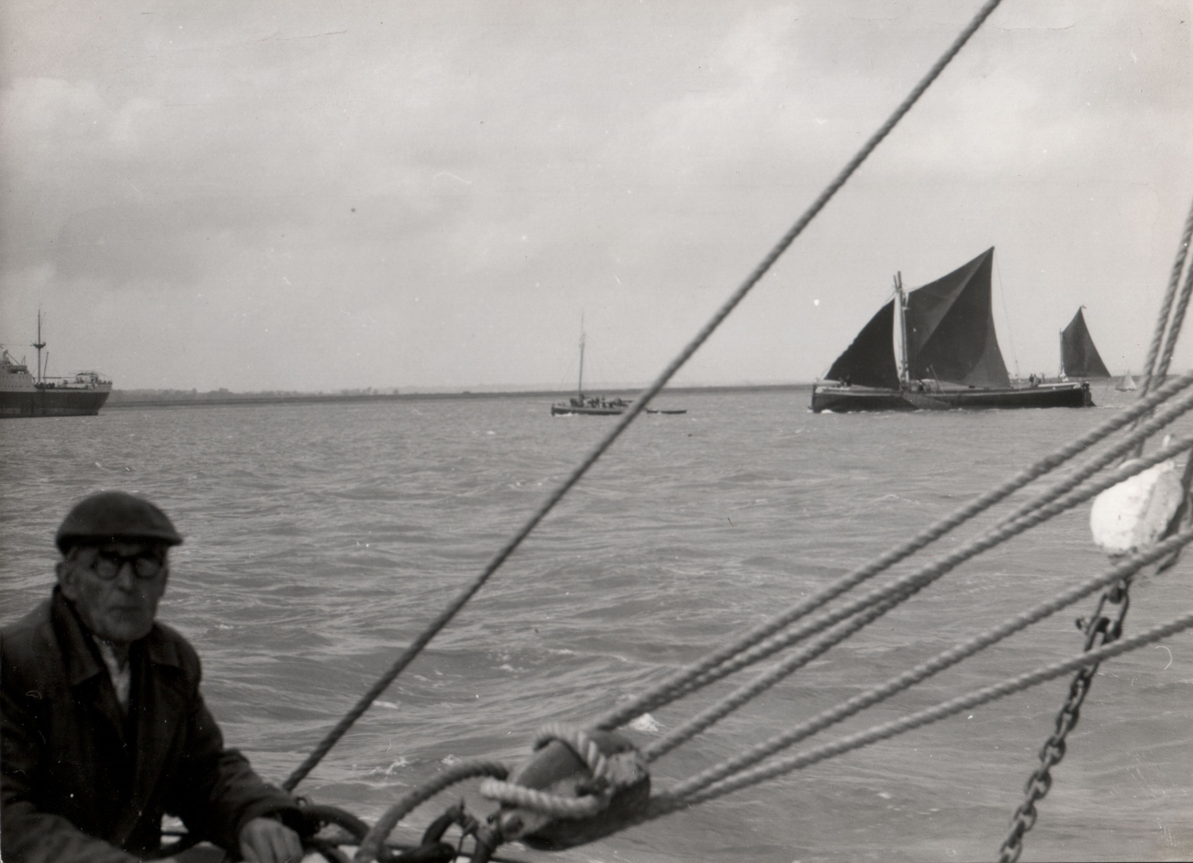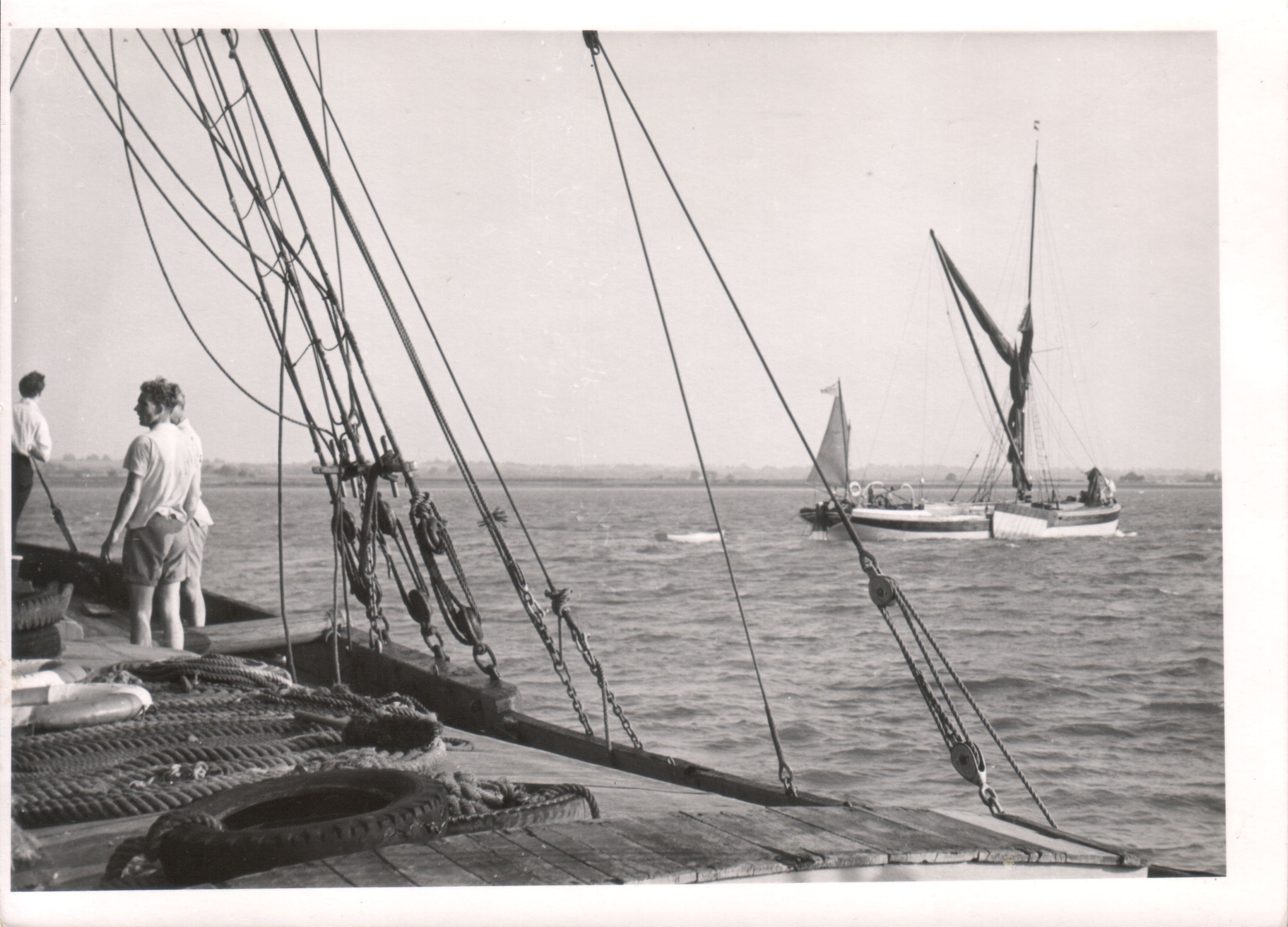 Hob Keeble on board ‘Memory’, 1963 Blackwater barge match Bob writes: This was ‘Westmoreland’ off Osea Island – I think. The fleet were turned at Osea pier and sent back out to the Bench Head before returning to Maldon. It was blowing quite hard by then, southerly and the barges covered a fair few miles.