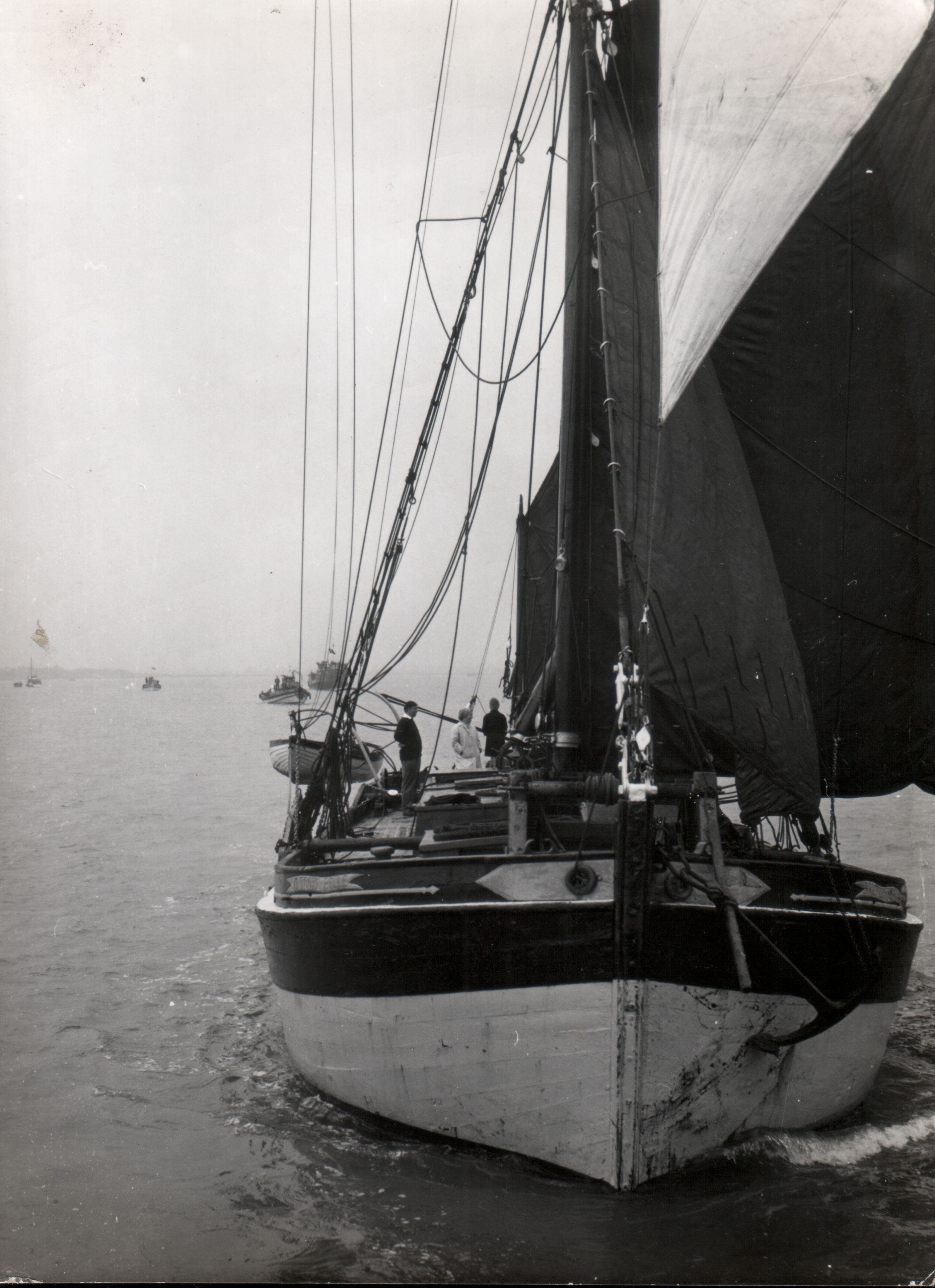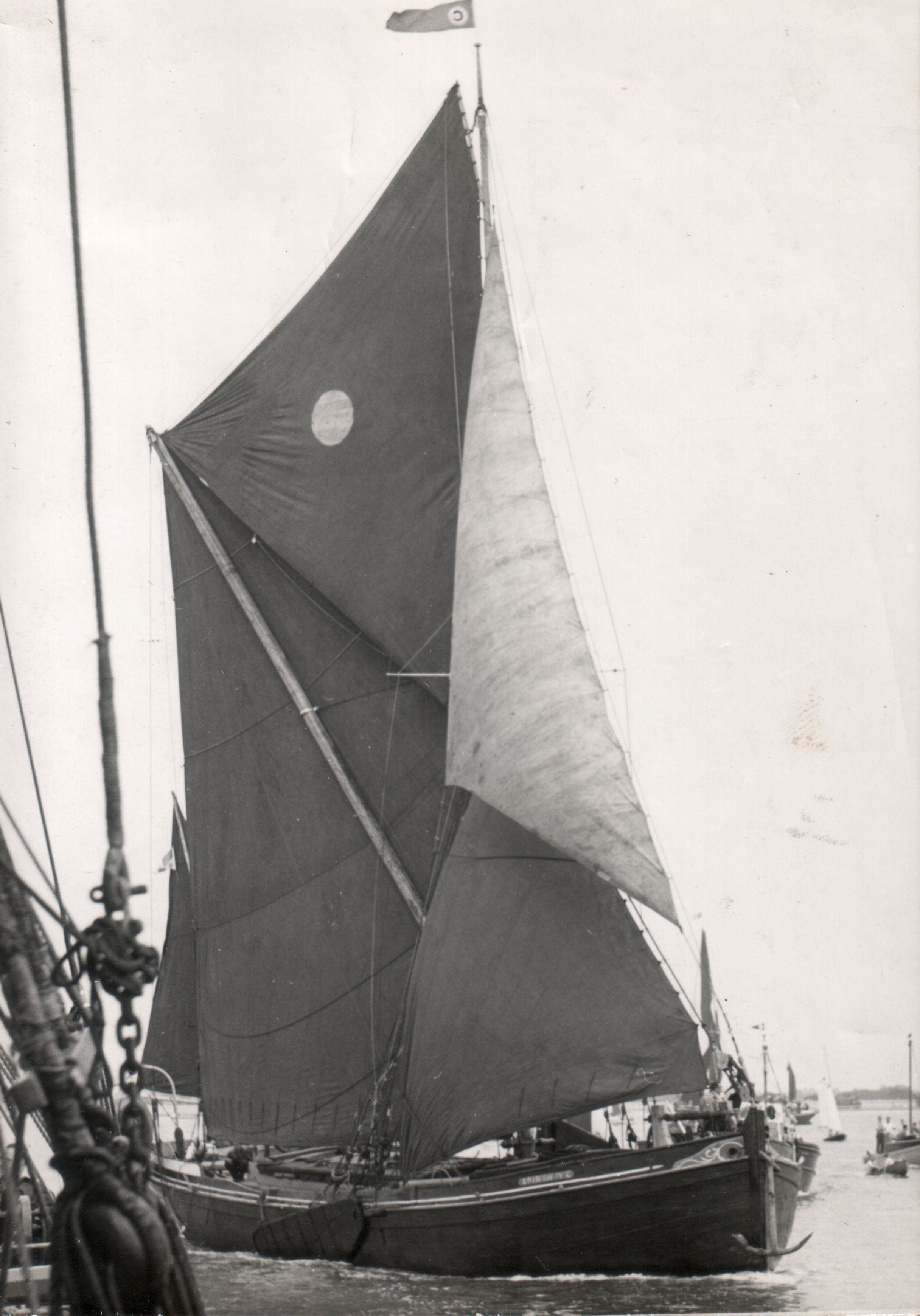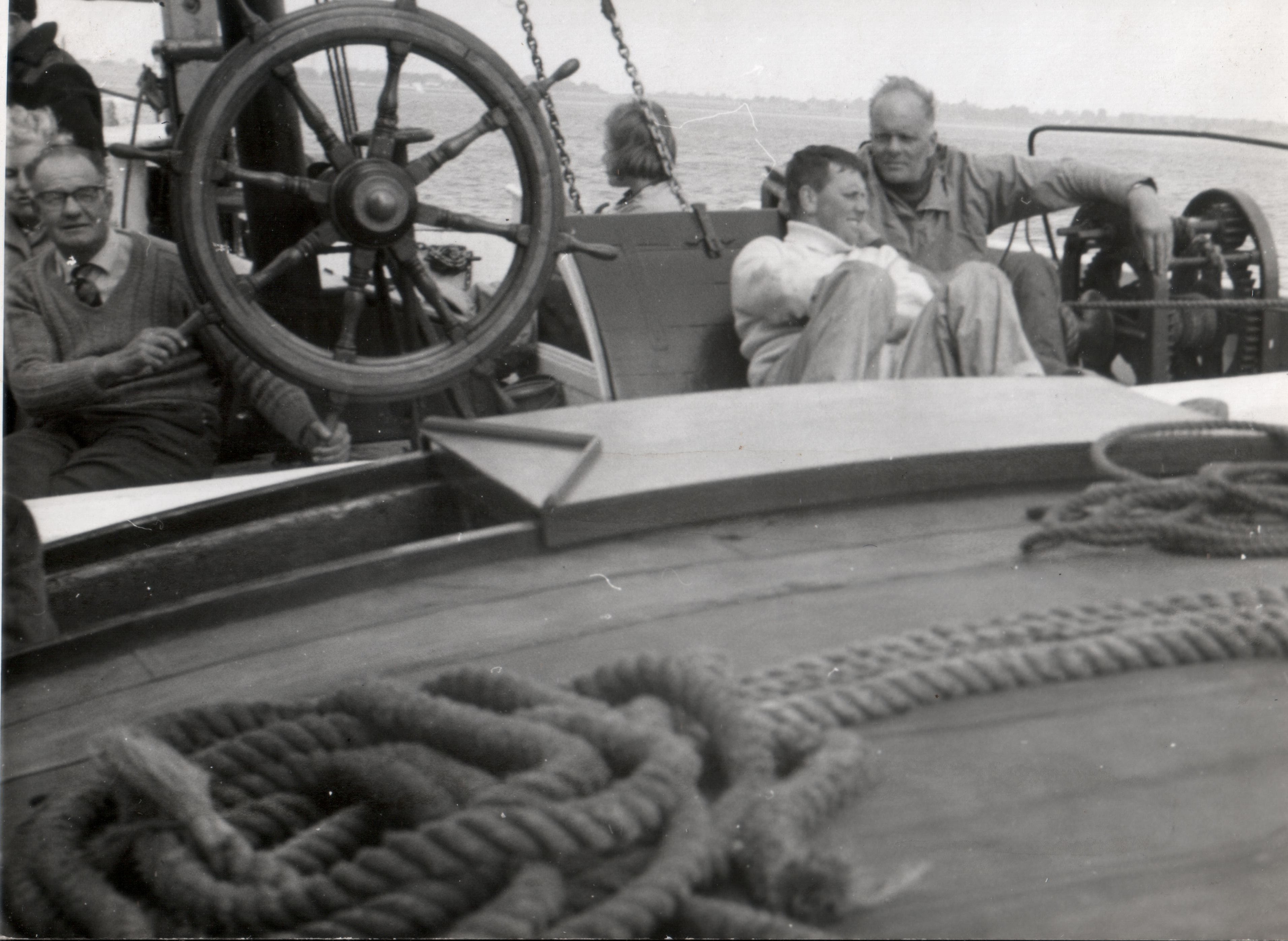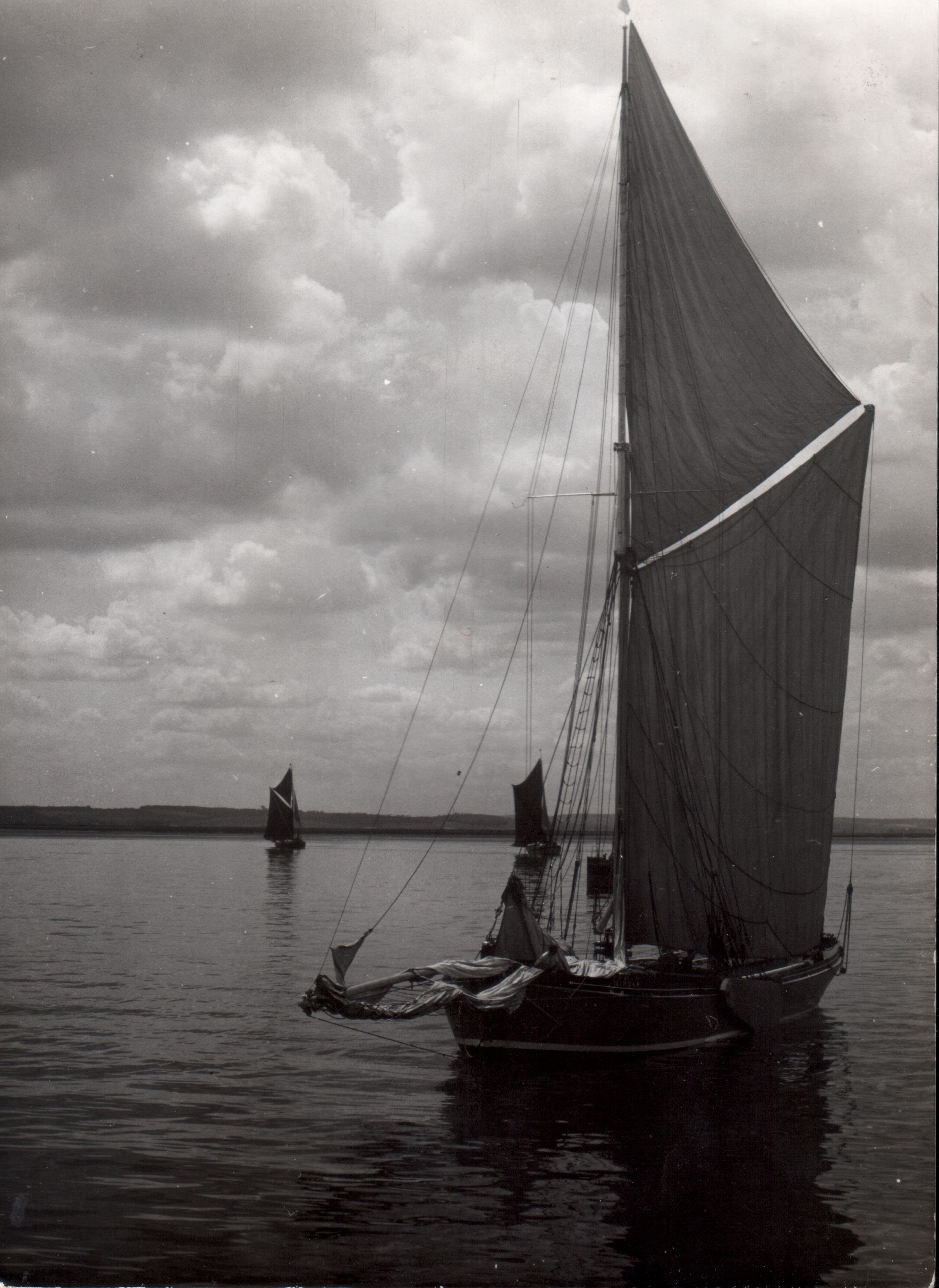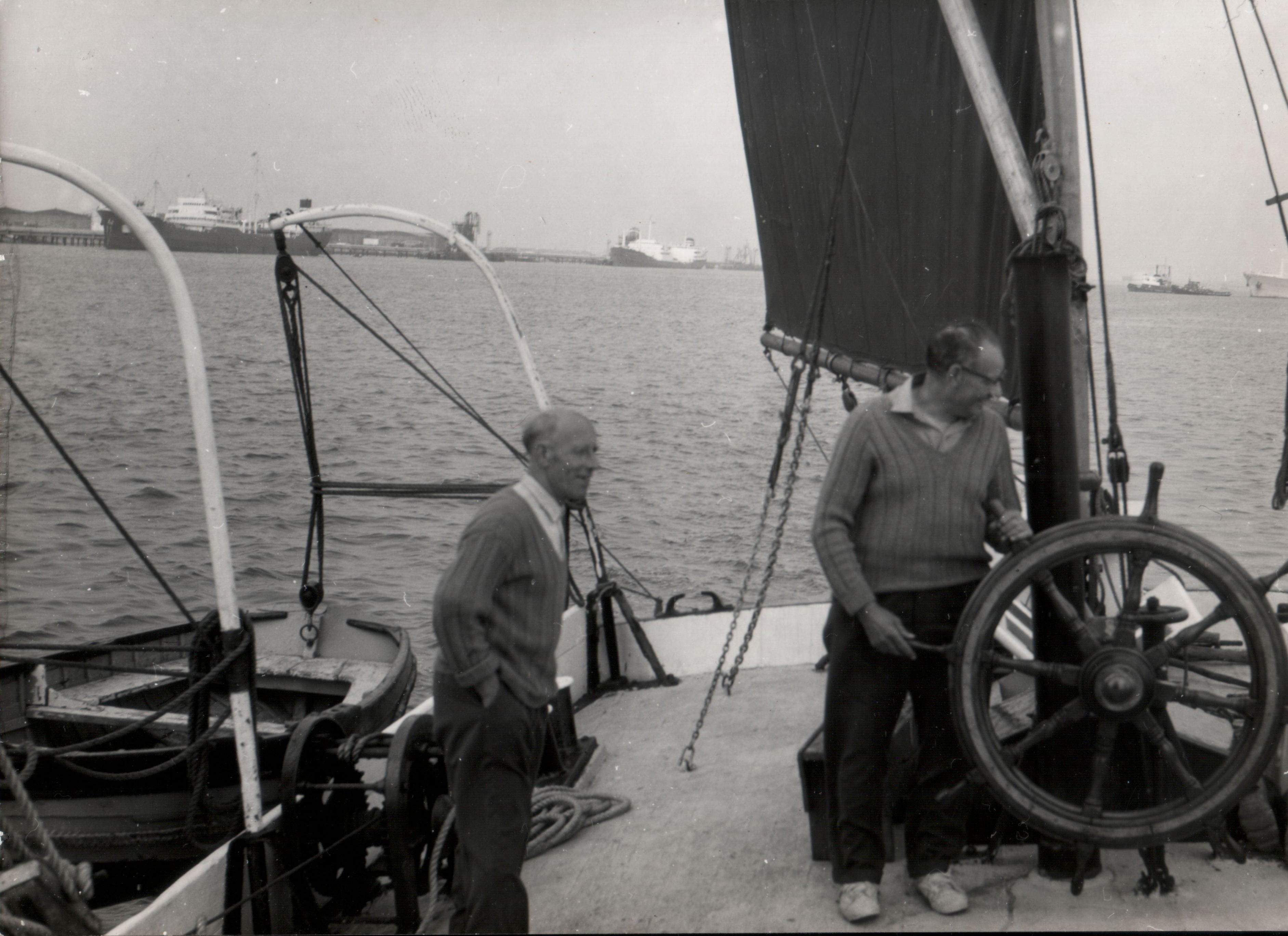 Hob Keeble on board ‘Memory’, 1963 Blackwater barge match Bob writes: This was ‘Westmoreland’ off Osea Island – I think. The fleet were turned at Osea pier and sent back out to the Bench Head before returning to Maldon. It was blowing quite hard by then, southerly and the barges covered a fair few miles.