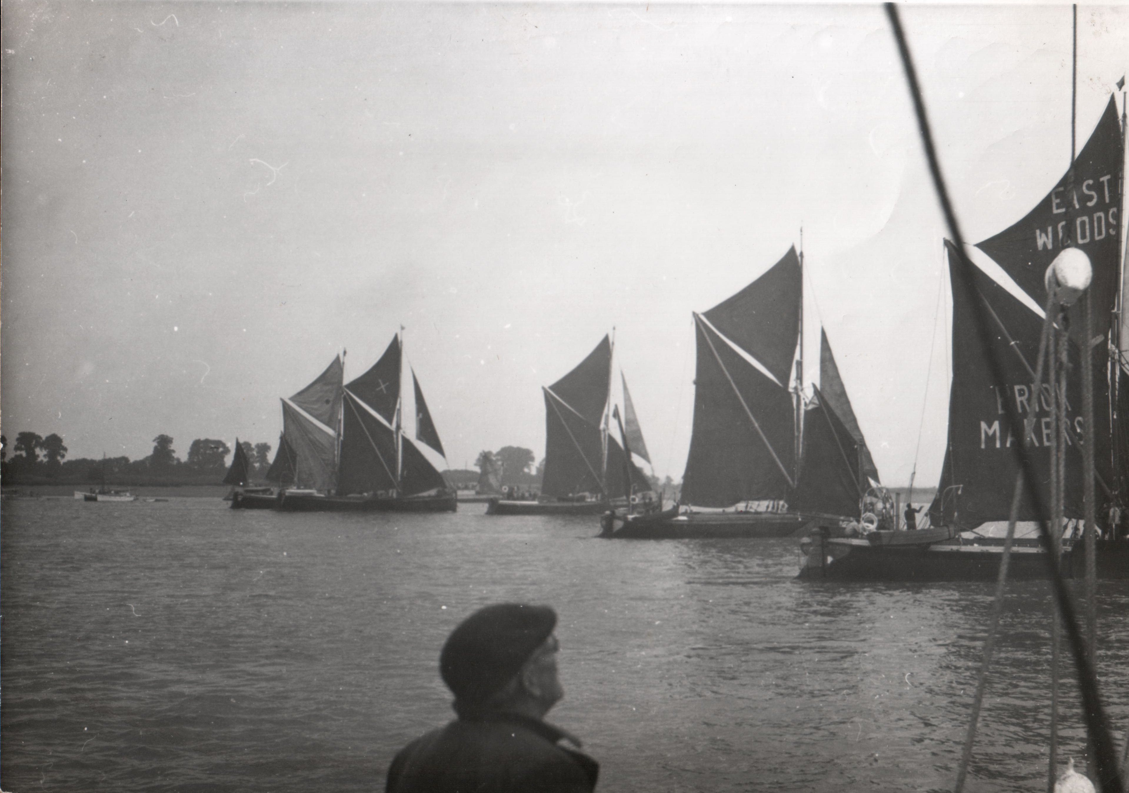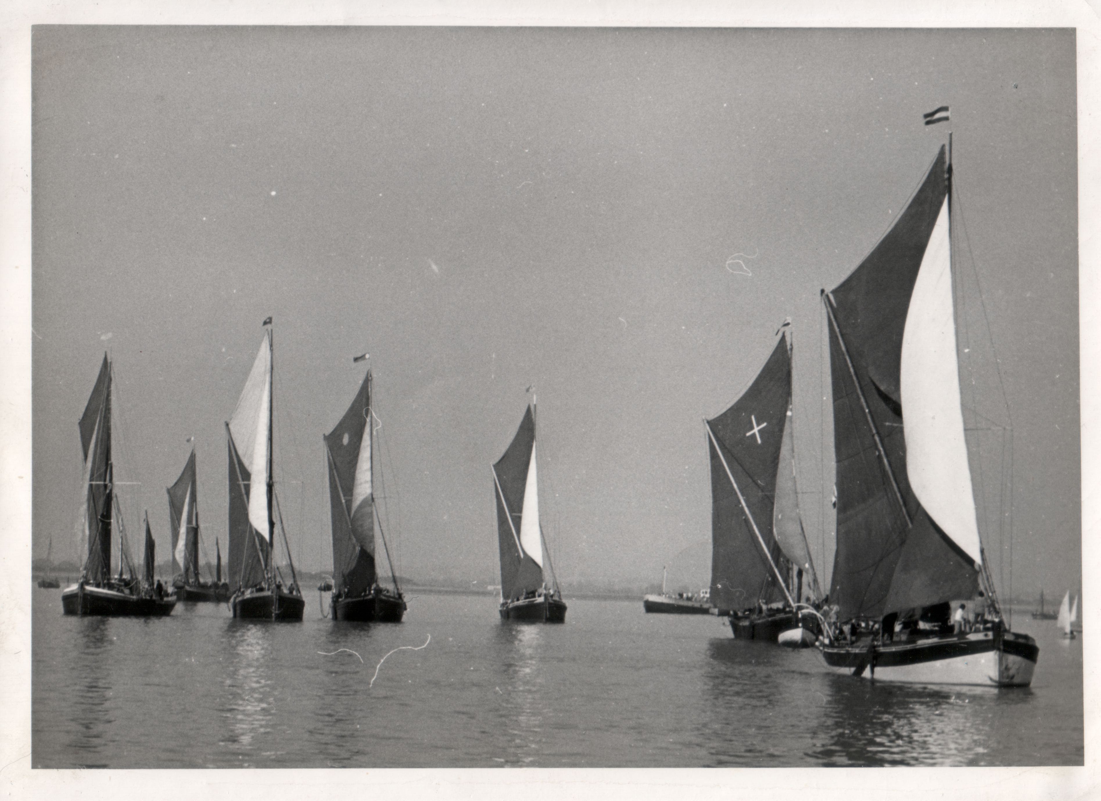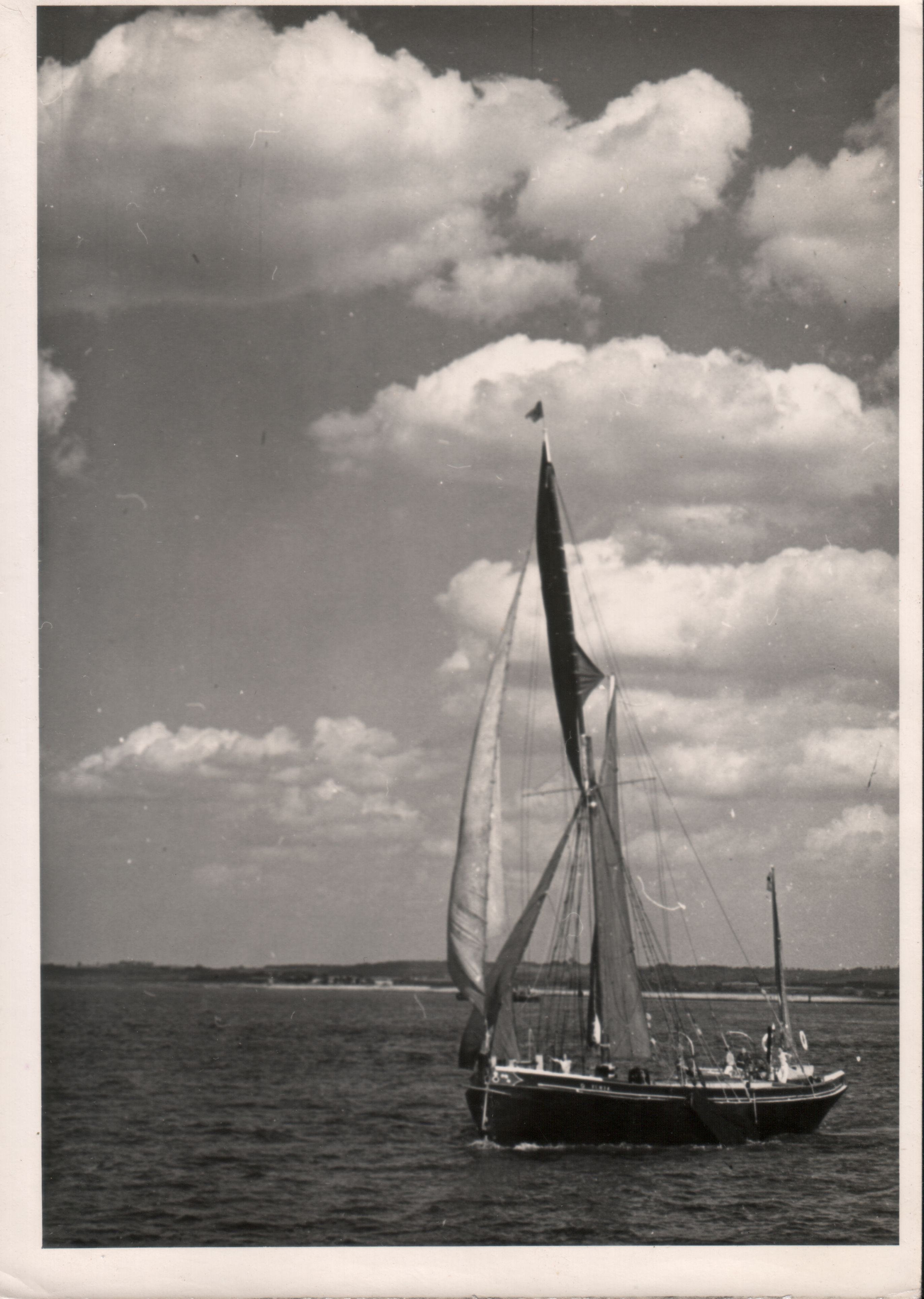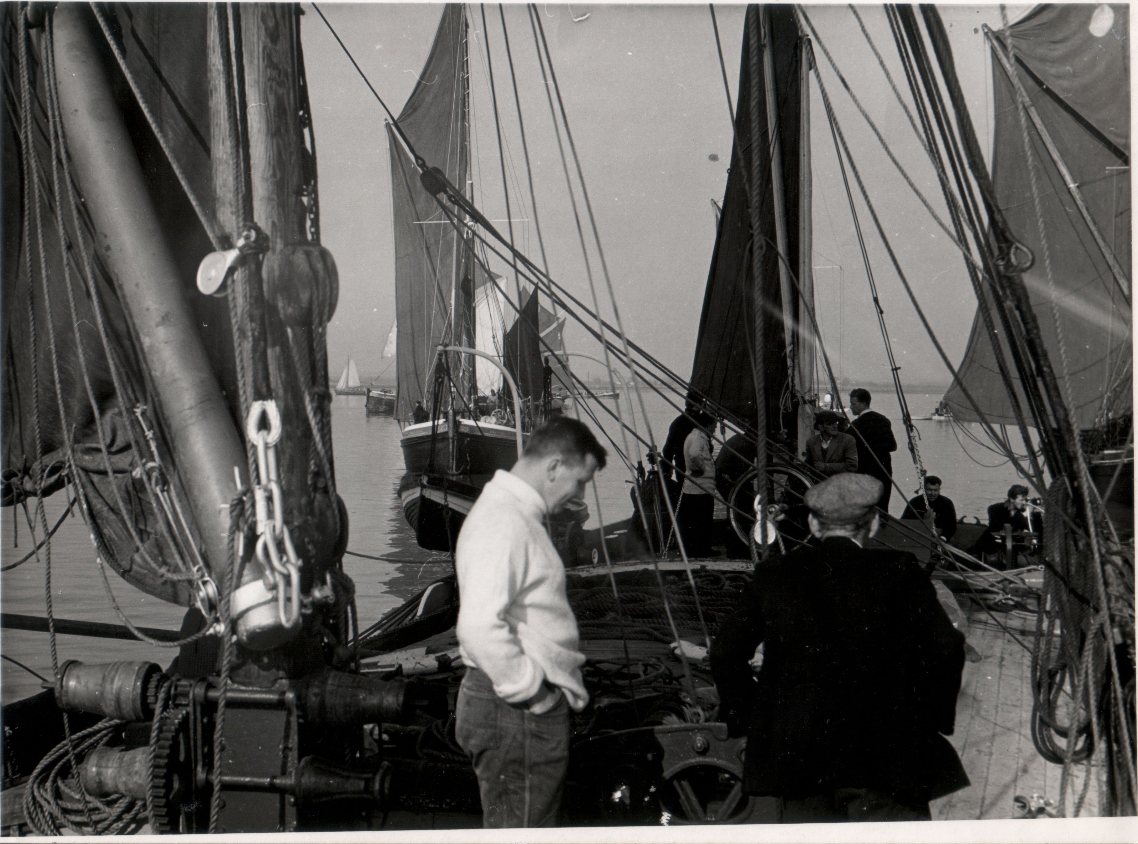 Hob Keeble on board ‘Memory’, 1963 Blackwater barge match Bob writes: This was ‘Westmoreland’ off Osea Island – I think. The fleet were turned at Osea pier and sent back out to the Bench Head before returning to Maldon. It was blowing quite hard by then, southerly and the barges covered a fair few miles.