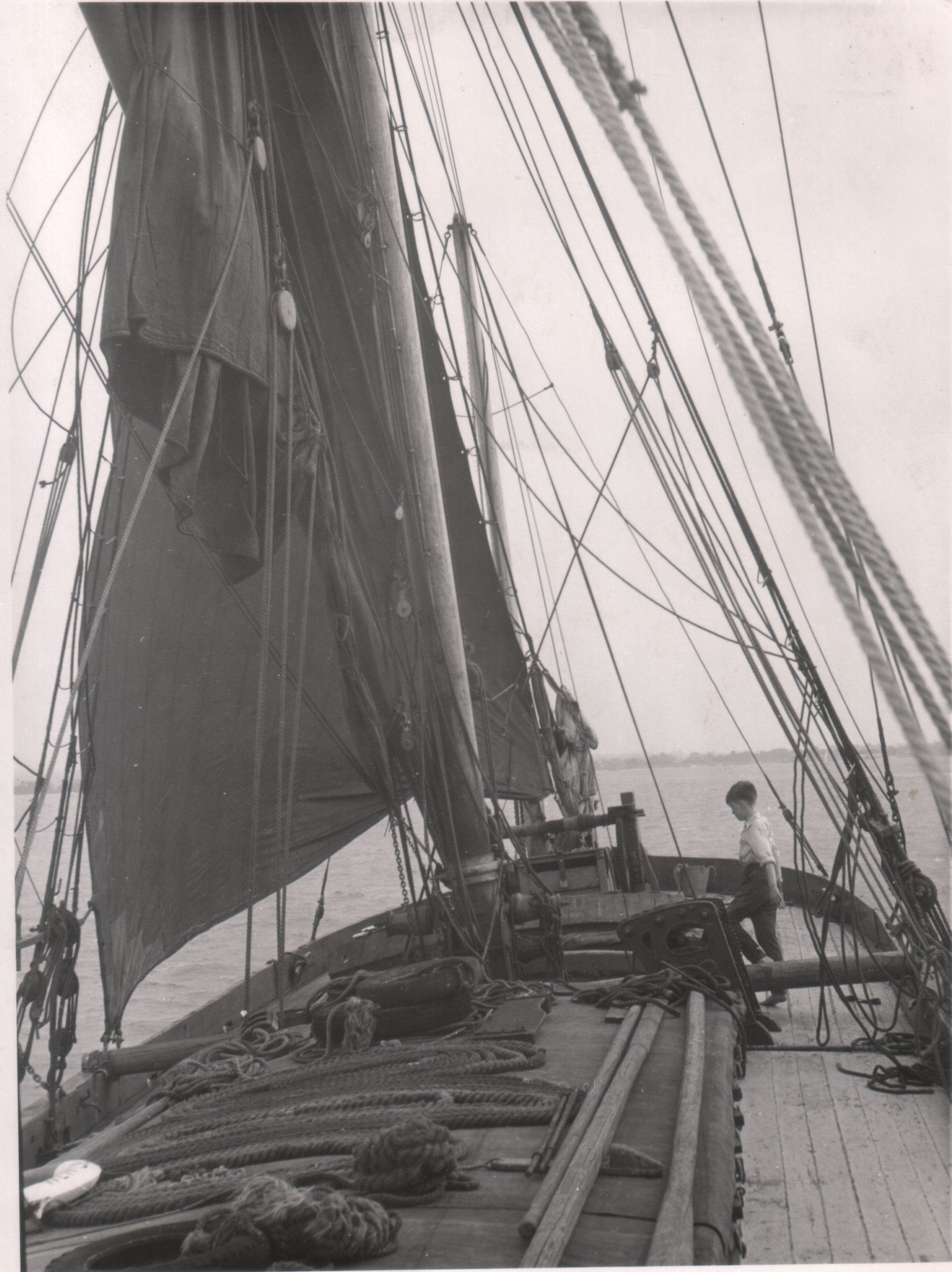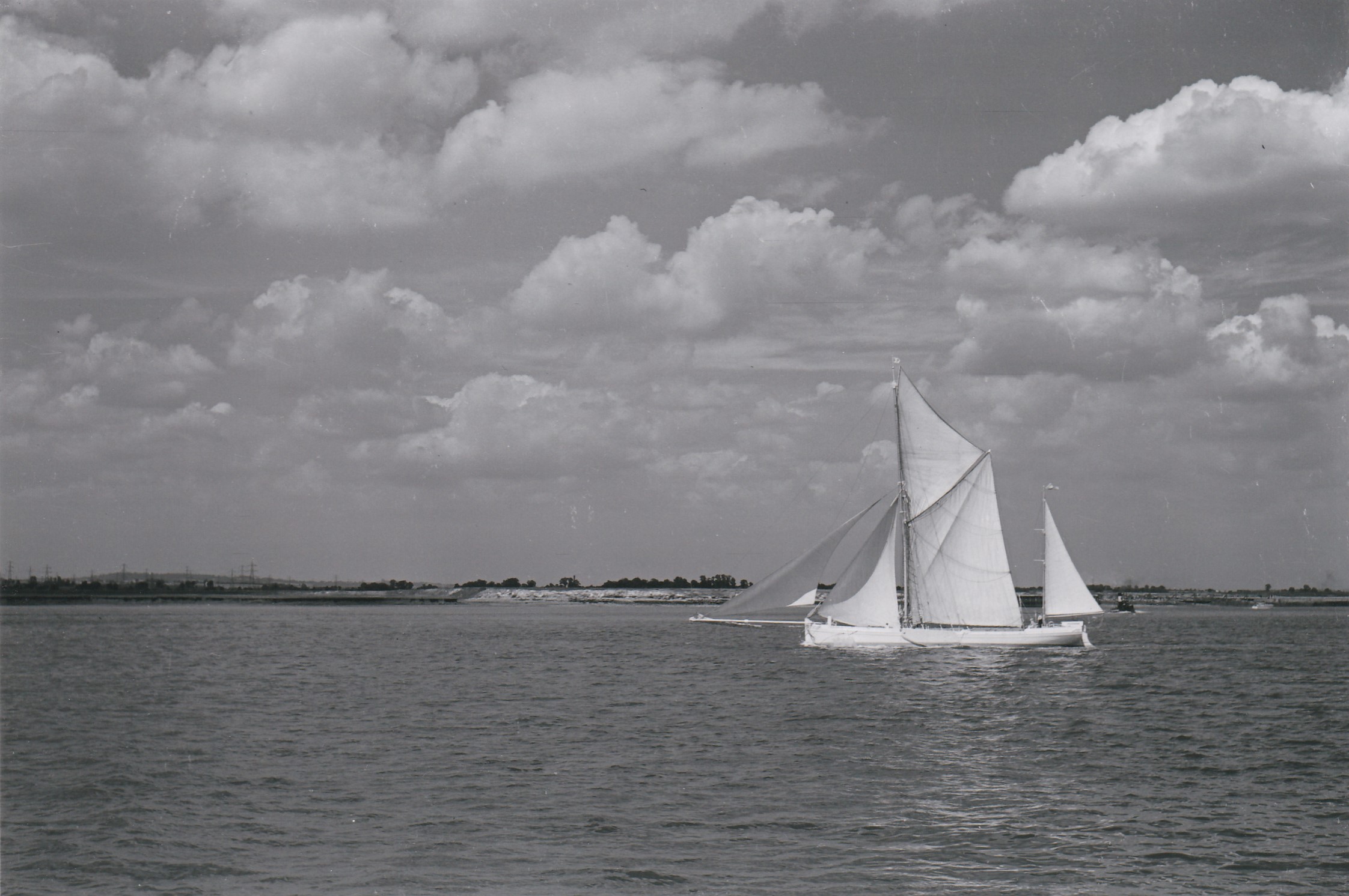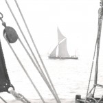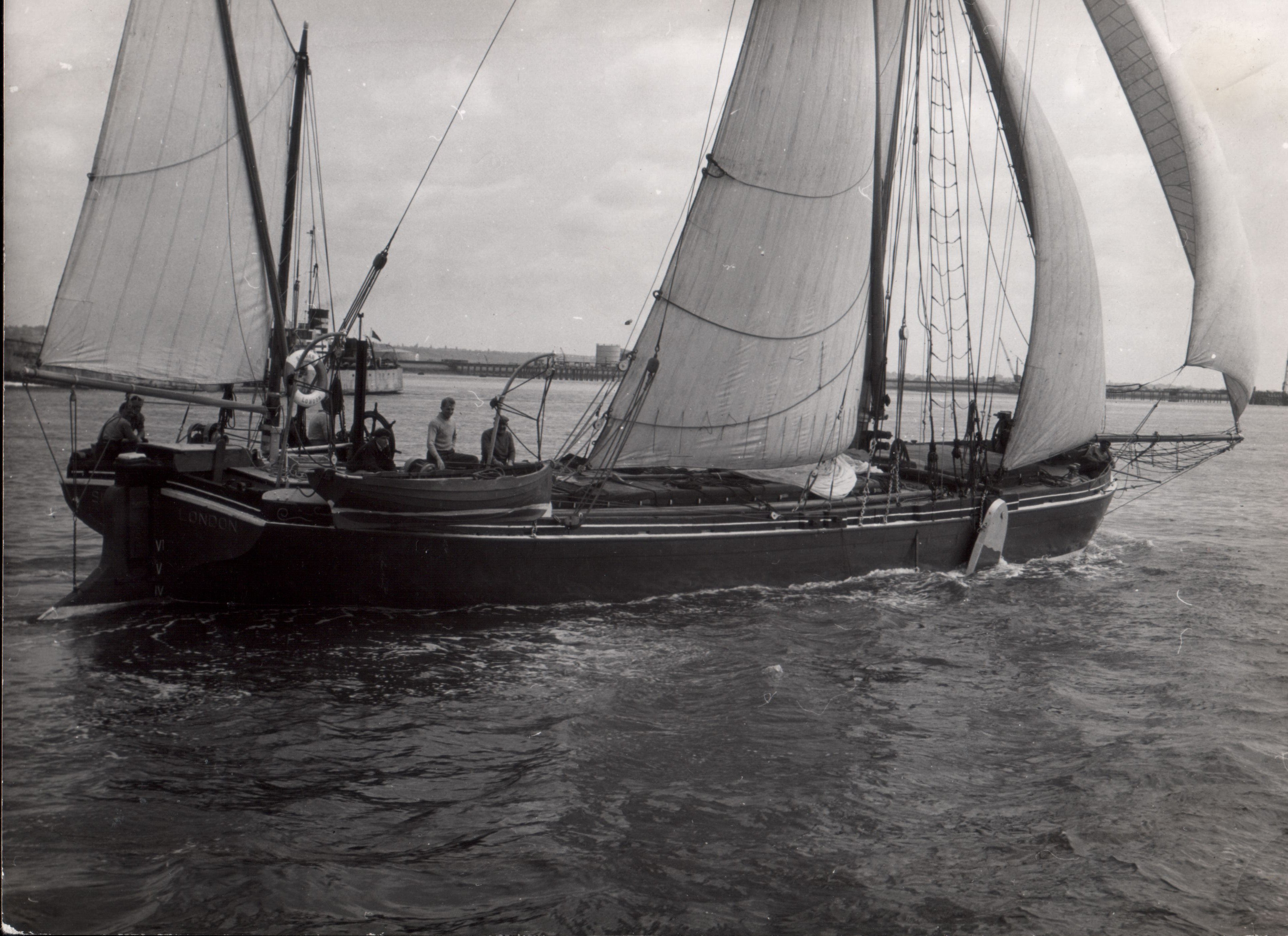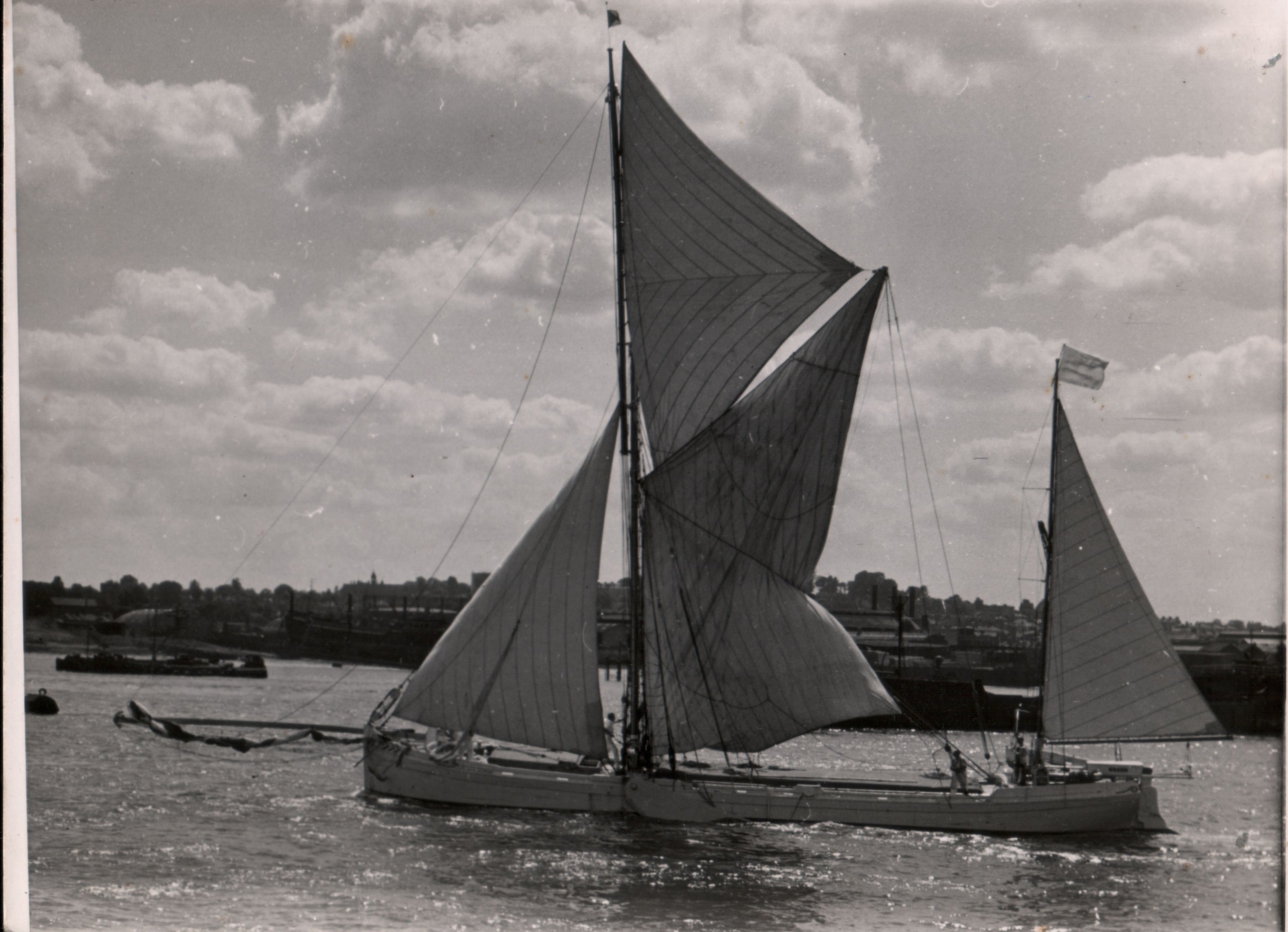 Hob Keeble on board ‘Memory’, 1963 Blackwater barge match Bob writes: This was ‘Westmoreland’ off Osea Island – I think. The fleet were turned at Osea pier and sent back out to the Bench Head before returning to Maldon. It was blowing quite hard by then, southerly and the barges covered a fair few miles.