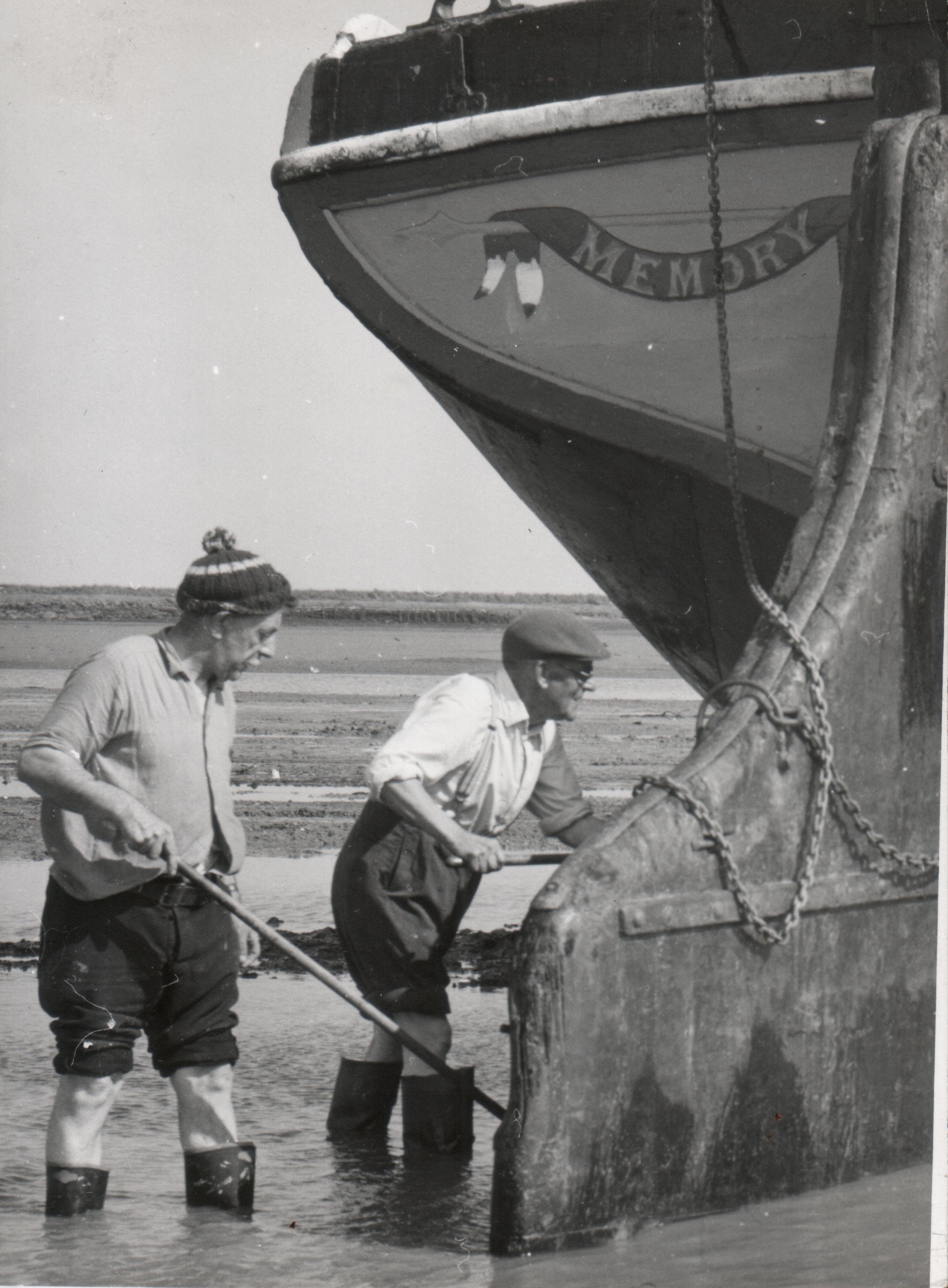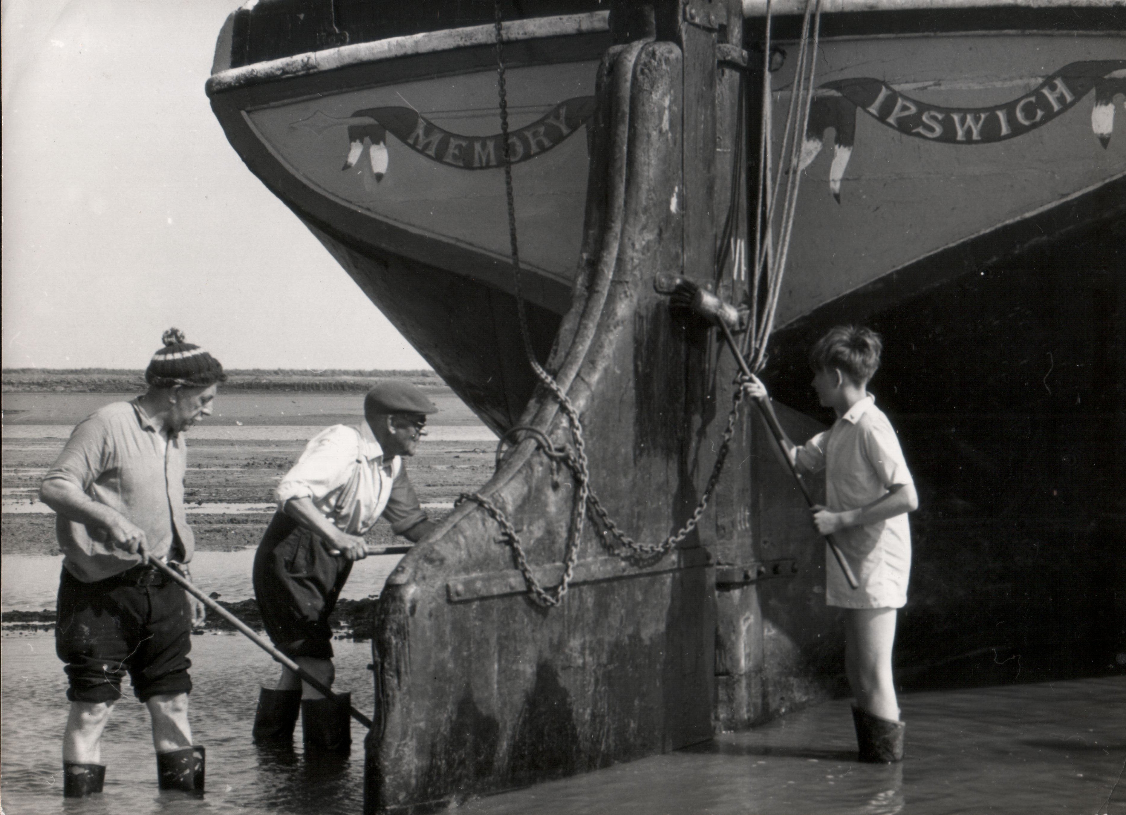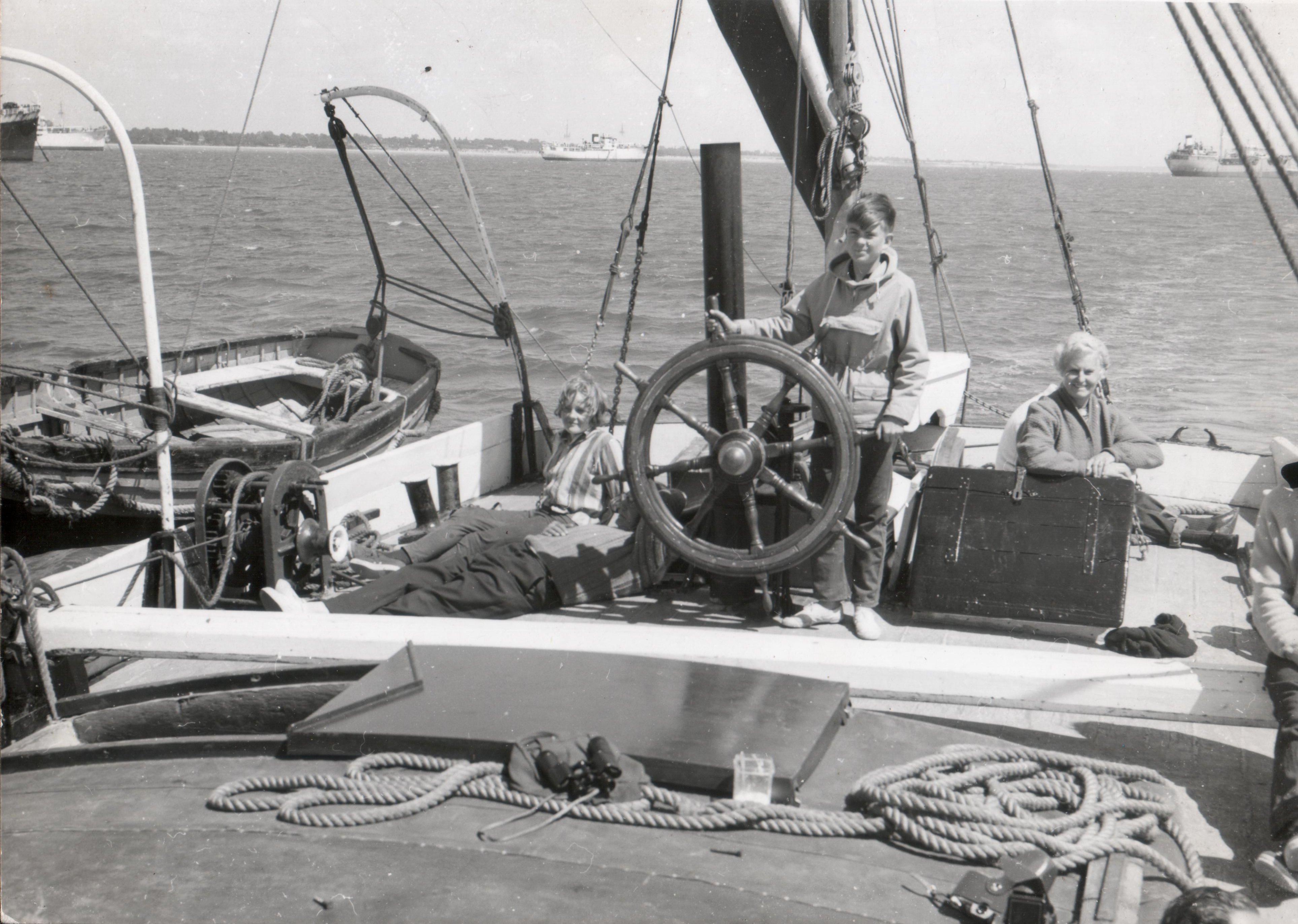 SB Memory with laid-up ships at Bradwell, 1963. L to R: Jane Benham, Bob Kemp, Mrs Farrington