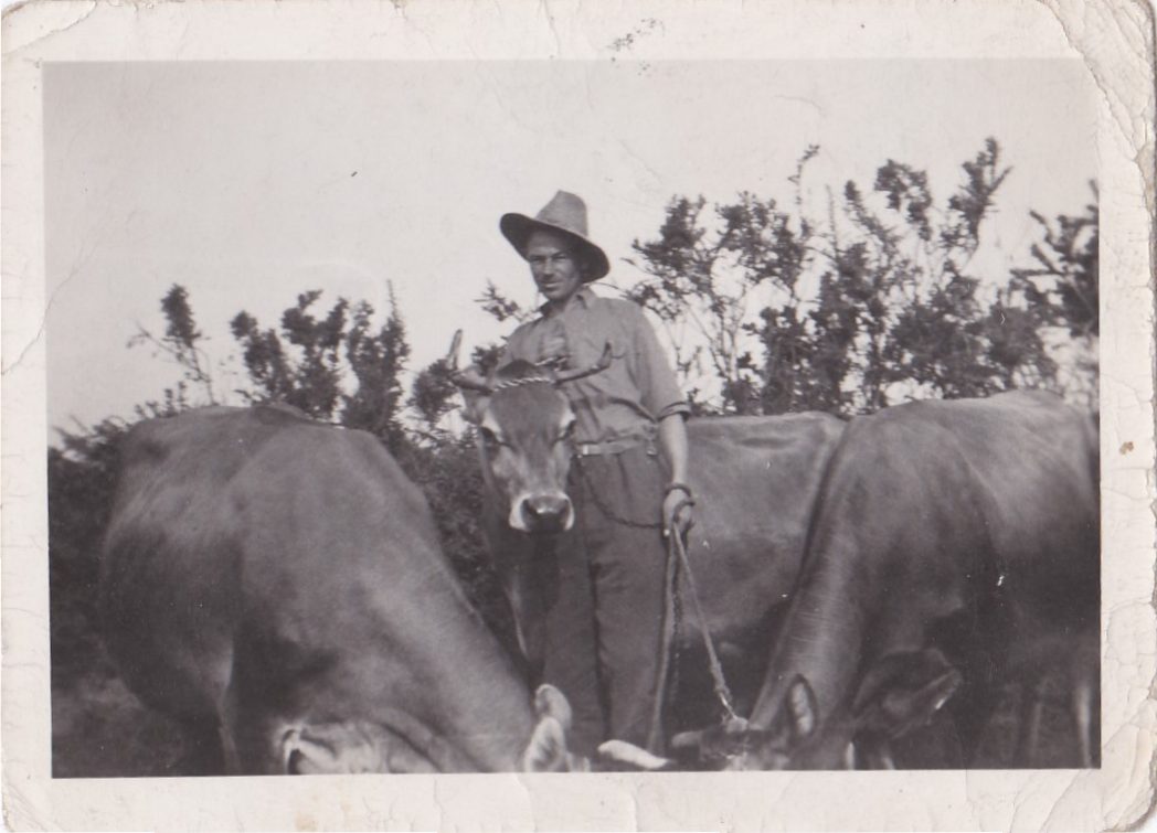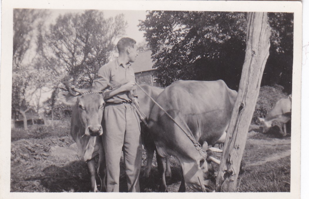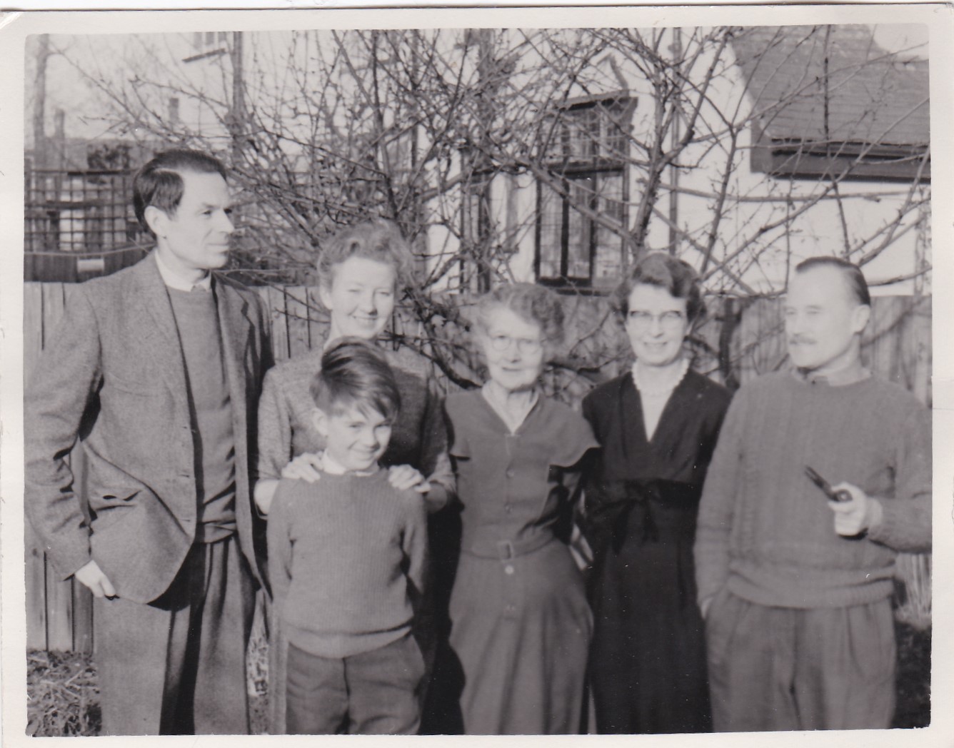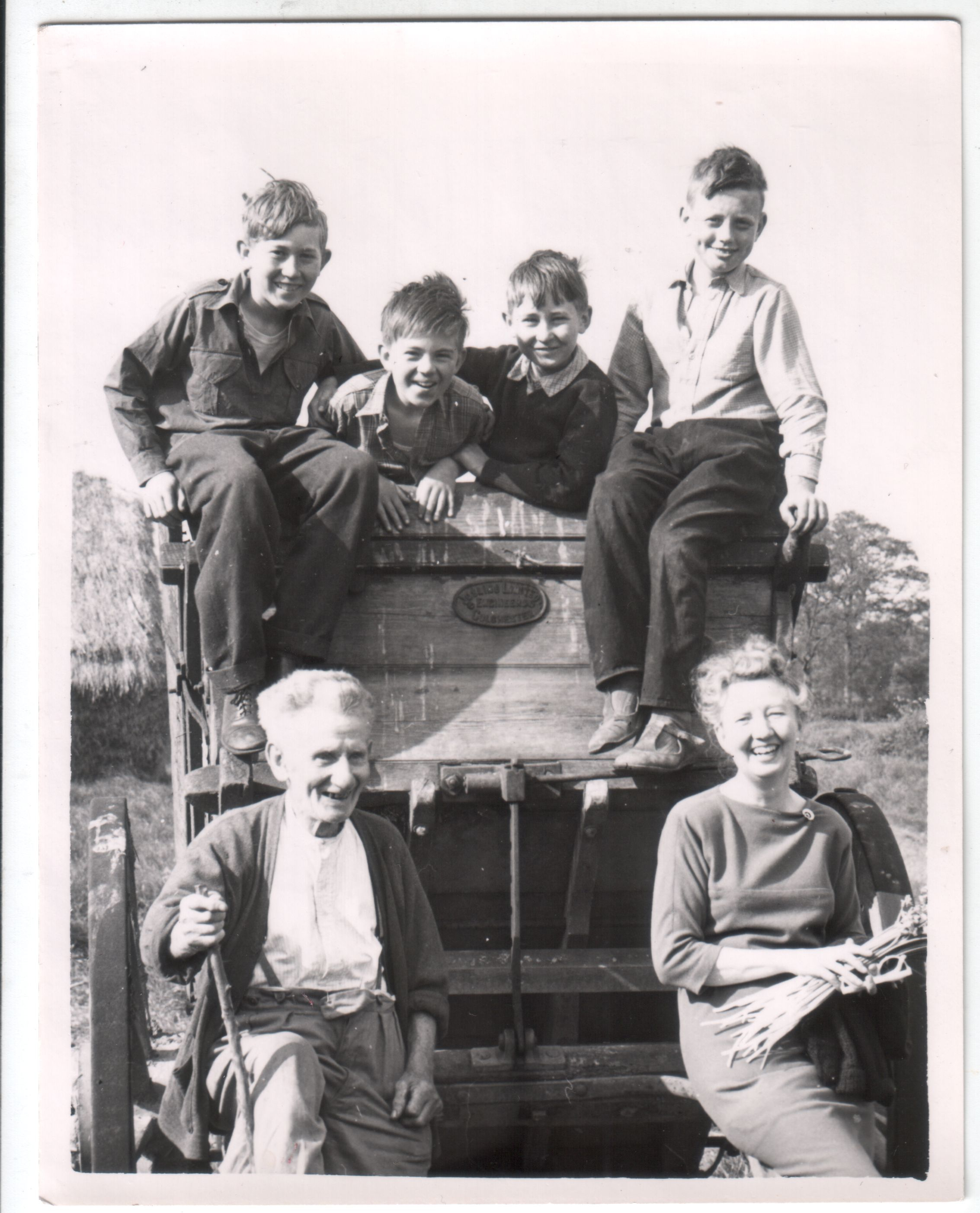 RK 2nd left. Martin and Bartley Feeney either side. Keith Searl 2nd right. Mum’s uncle Ev Last and Mum. The Lasts lived at the White City when they were Bentall’s cottages.
