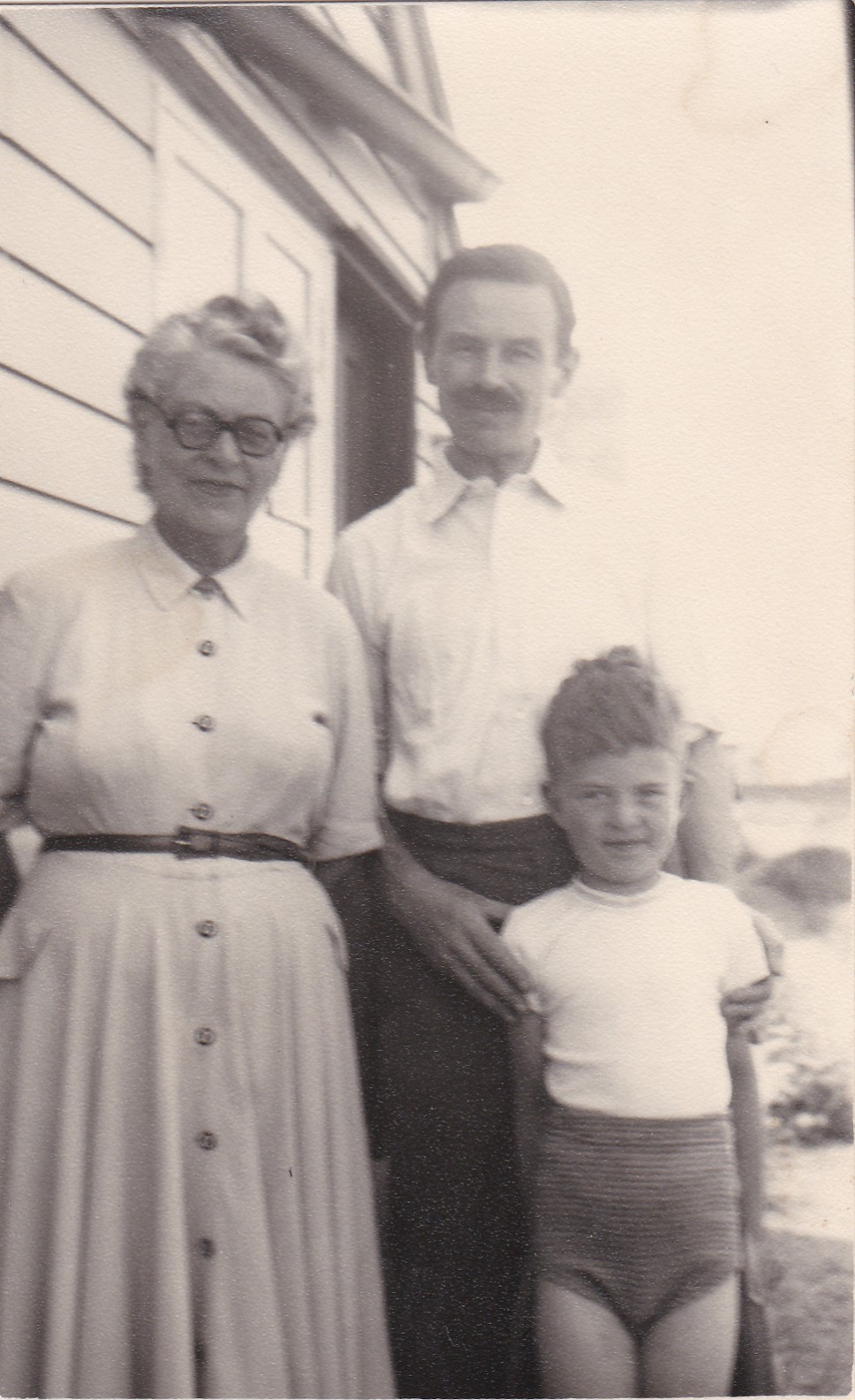 Three generations: Lucy, J E and R E Kemp, Mill Beach. About 1955.