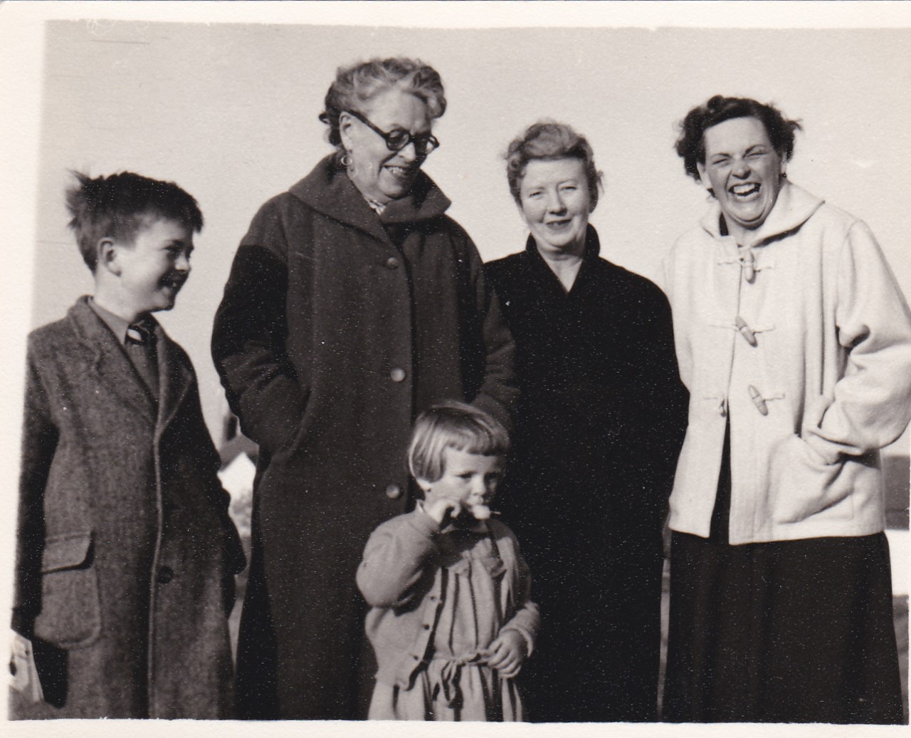 St Peter’s on the Wall, Bradwell. Possibly before my time. ?[taller girl behind shorter girl]. Cousin Moira, perhaps. Pat Kemp. Ted Kemp. Mum’s cousin Betty Feeney.