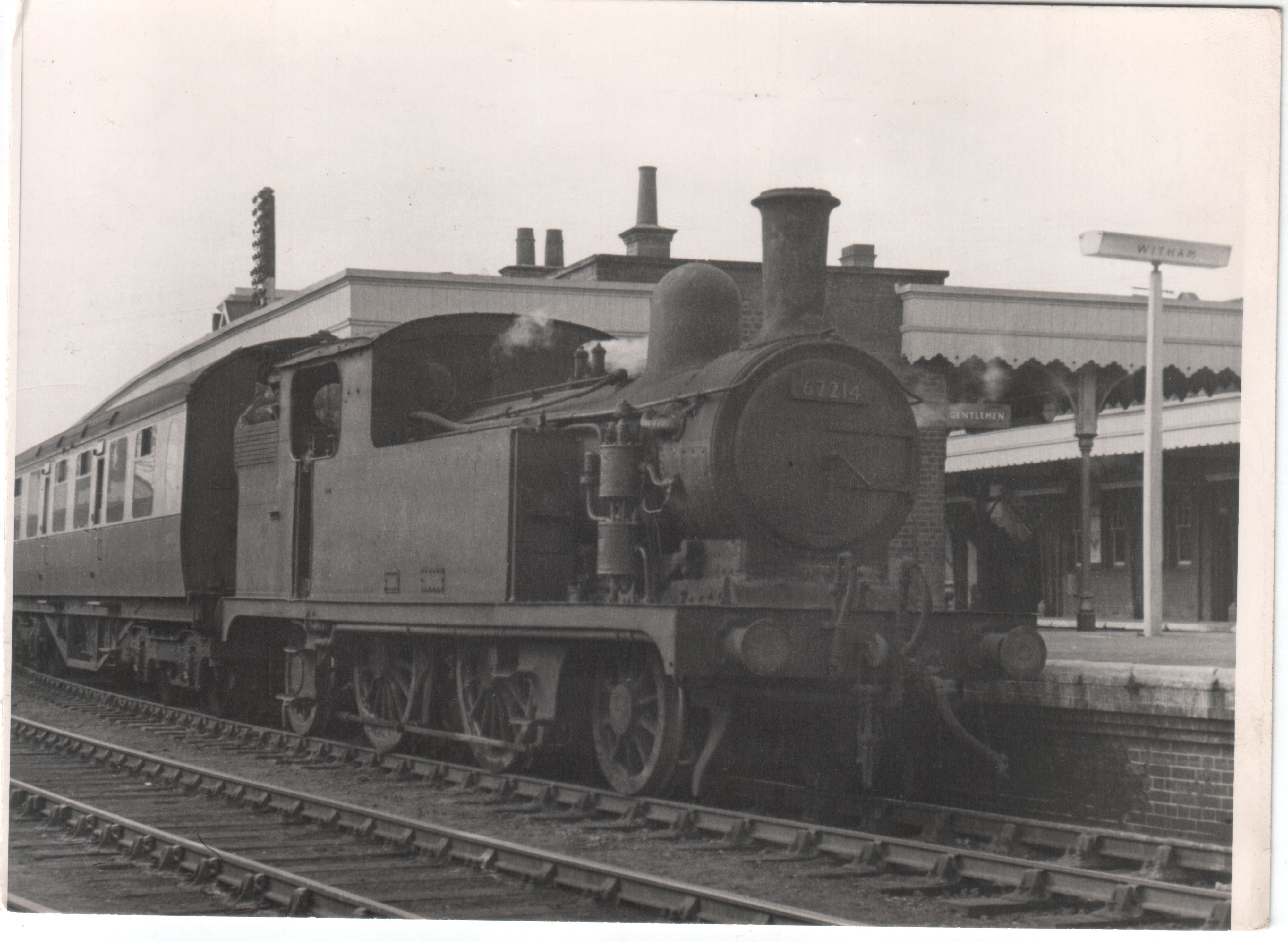 An ancient Great Eastern tank engine with the Maldon train at Witham.
